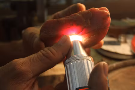 | Dân mua đá chuyên nghiệp thường mang bên mình một chiếc đèn pin đến để soi, chọn hàng. |
