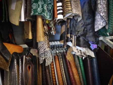 | Hàng tấn vải, da và nguyên liệu sản xuất được chuẩn bị sẵn trong nhà máy của Gucci |