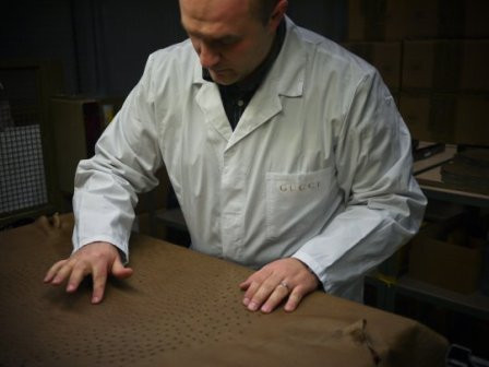 | Một thợ thủ công làm việc tại nhà máy của Gucci ở Italy |