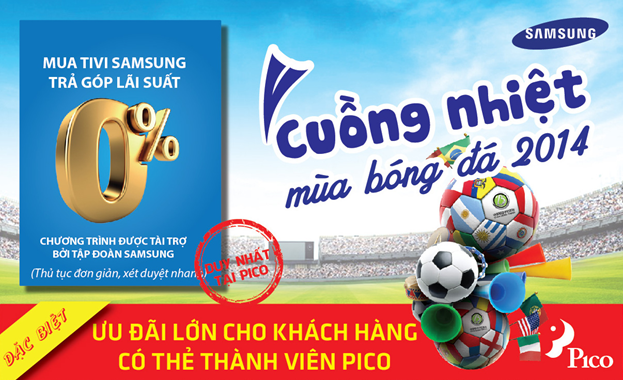 Hòa chung niềm vui, sự háo hức của người hâm mộ, với mục đích tri ân những khách hàng thân thiết, hệ thống siêu thị Điện máy PICO sẽ mang đến chương trình ưu đãi dành cho khách hàng có thẻ thành viên PICO khi mua TV Samsung.
