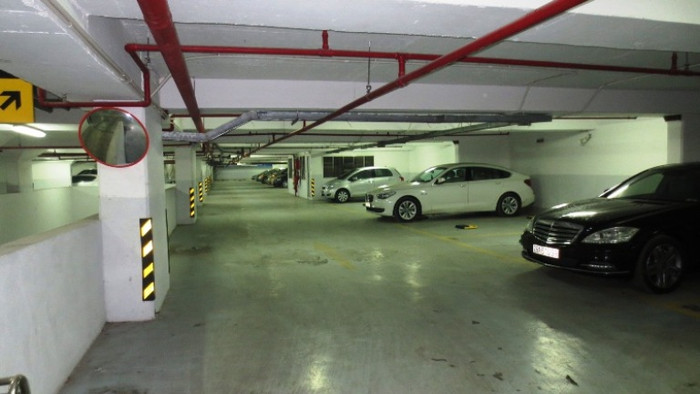 | Phía dưới tầng hầm, chỉ có vài chiếc xe đỗ, còn lại đều vắng tanh |