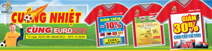 Bên cạnh đó là chương trình giảm giá và tặng quà hàng loạt: Giảm 30% cho tất cả tivi, phụ kiện IT đồng giá 69.000 đồng, tặng gói quà 8.560.000 đồng gồm trọn bộ K+ SD 6 tháng, máy tính bảng Galaxy S wifi 5’’ cho tivi LED 3D từ 46’’ trở lên, tặng quạt bàn Midea và máy sấy tóc cao cấp trị giá 1.080.000 đồng cho máy tính xách tay bất kỳ, mua điều hòa tặng quà tùy chọn trị giá 640.000 đồng…