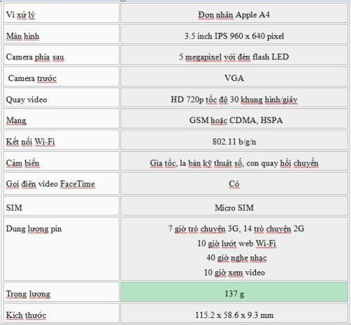 Sử dụng vi xử lý Apple A4 1GHz SoC và pin Li-ion có kích cỡ to hơn nên iPhone 4 có thời lượng đàm thoại khi dùng mạng 3G là 7 tiếng, 6 tiếng duyệt web với mạng 3G hay 10 tiếng khi duyệt với Wi-Fi, 10 tiếng xem video hay nghe nhạc trong suốt 40 tiếng và 300 giờ ở chế độ chờ.