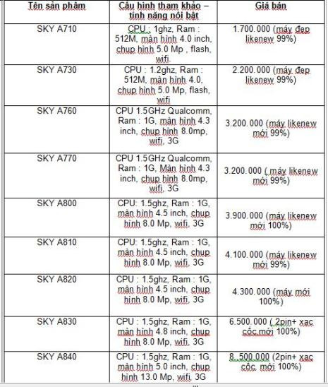 Các bạn có thể xem thông tin các mẫu sản phẩm SKY khác tại website: ngocmobile.vn