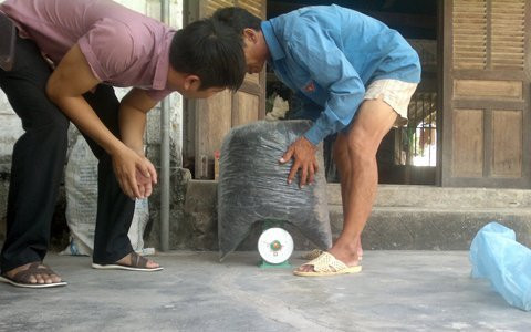 | Đóng bao, cân số lượng để chuẩn bị gửi ra Hải Phòng cho đầu nậu để bán sang TQ. |