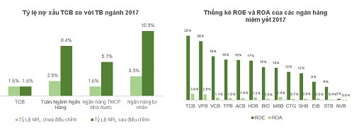 Thêm vào đó, TCB có tỷ lệ nợ xấu thấp nhất và chỉ số hiệu quả lợi nhuận như ROE, ROA lại cao nhất ngành.