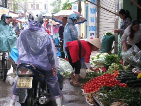 | Ngay từ sáng sớm, người đi chợ đã tấp nập.. mua rau. |