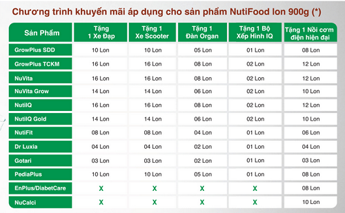 Tuy nhiên, theo thể lệ thì chương trình khuyến mãi chỉ áp dụng cho sản phẩm lon NutiFood loại lon 900g. Theo đó, để nhận được một trong những phần quà như xe đạp thần tốc, xeScooter, đàn Organ, bộ xếp hình IQ, nồi cơm điện, chảo, nồi sữa Supor,cà mèn inox, tô sứ lớn hay ly pha sữa khách hàng phải "mua liền 1 lúc"đủ số lượng lon theo yêu cầu sau: