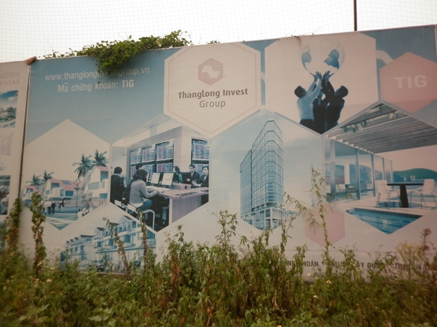 | Nhìn từ xa, người đi đường dễ thấy rõ cỏ mọc cao bên trong khu đất vốn là một dự án Trung tâm tài chính của Vimeco - Hanel. |