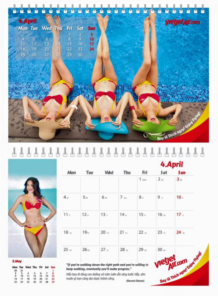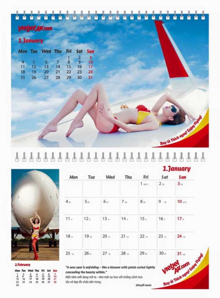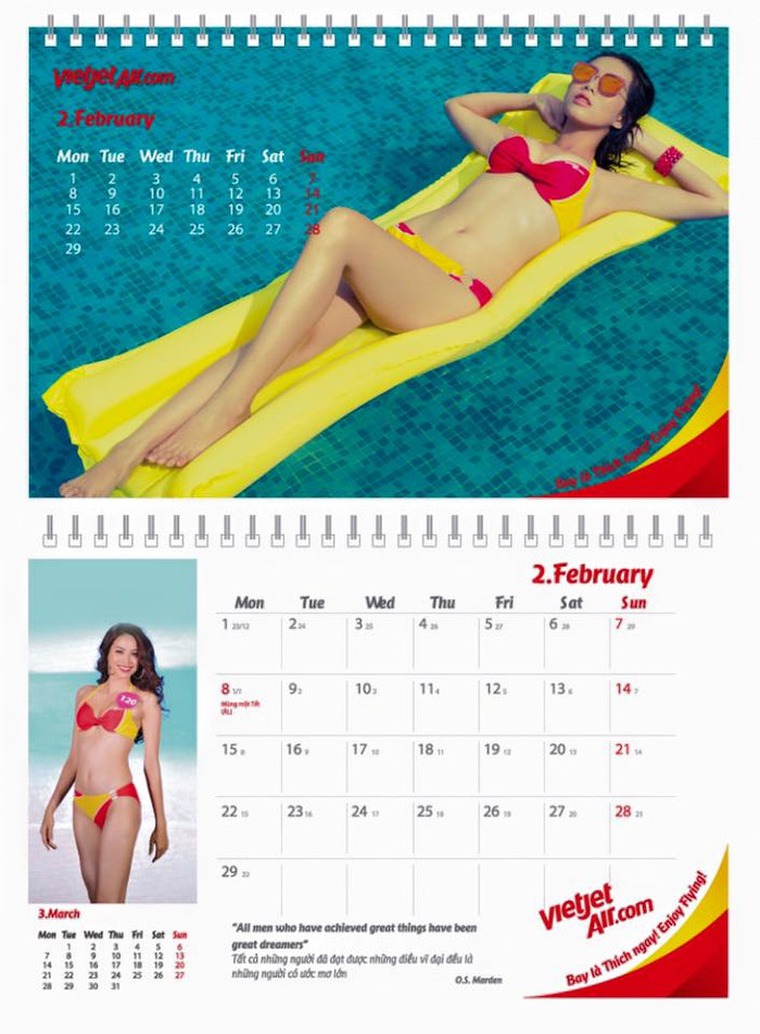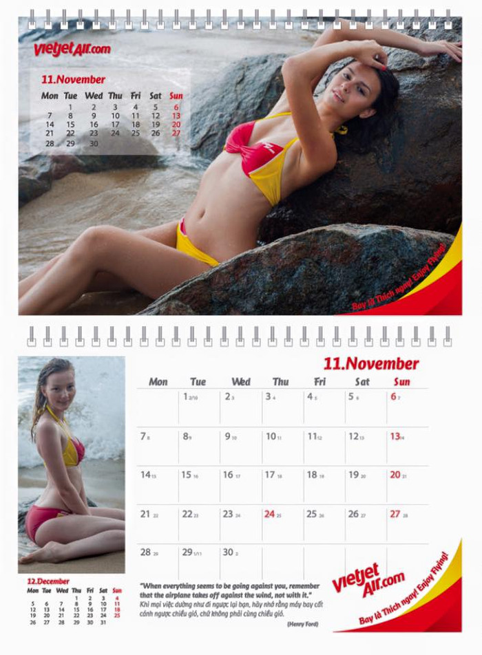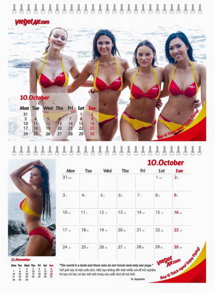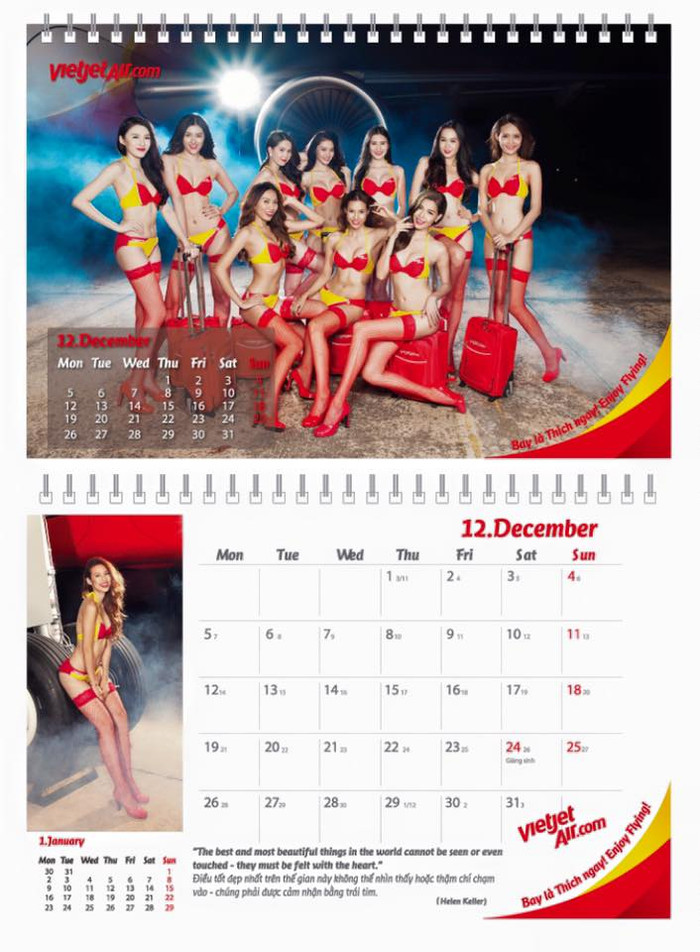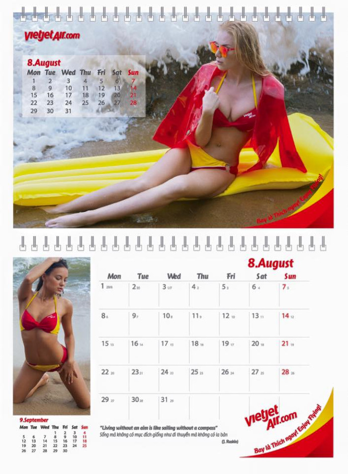 | Hình ảnh bộ lịch người mẫu bikini được Vietjet in tặng hành khách. |