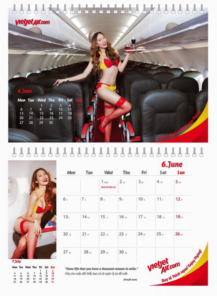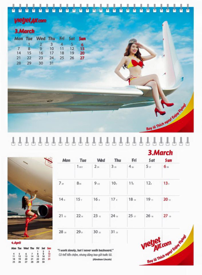 "Việc in lịch bộ ảnh người mẫu bikini của VietJet với mục đích làm quà tặng khách hàng đã được tính toán kỹ lưỡng và về cơ bản, nó phản ánh cá tính và hình ảnh trẻ trung, vốn là một phần thuộc tính quan trọng làm nên của thương hiệu VietJet Air", nickname H.T bình luận.