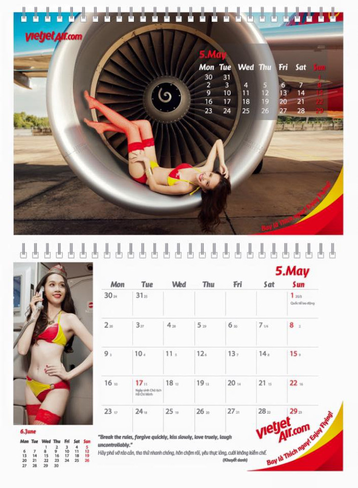Hơn 1 năm sau những ồn ào rò rỉ hình ảnh dàn người mẫu xinh đẹp của Công ty Venus mặc bikini 2 màu vàng đỏ (màu của máy bay Vietjet) chụp ảnh trong khoang và trước máy bay được cho là của Hãng hàng không VietJet Air khiến cư dân mạng “nổi sóng”, những hình ảnh này chính thức xuất hiện trên bộ lịch 2016 được Hãng hàng không Vietjet thiết kế tặng khách hàng.