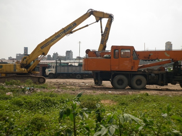 | Tuy nhiên sau gần 2 năm khởi công, khu đất cho dự án này trở thành bãi trồng rau muống của người dân sống gần đây |