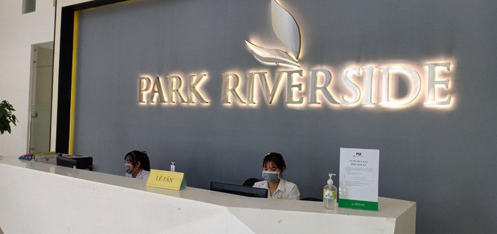 | Khu vực quầy lễ tân của khu nhà mẫu dự án The Matrix One (đường Lê Quang Đạo, quận Nam Từ Liêm, Hà Nội), bộ phận lễ tân tiếp đón và khàng hàng được yêu cầu đeo khẩu trang và sử dựng cồn sát khuẩn được đặt tại quầy lễ tân. |