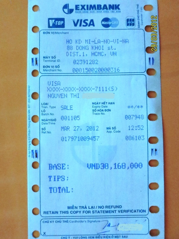 Phản ánh đến báo điện tử Giáo dục Việt Nam, bà Nguyễn B.T (ngụ tại quận Bình Thạnh, TP.HCM) cho biết: “Tôi là khách hàng thường xuyên của quý cửa hàng Milano Đồng Khởi, TP.HCM. Vào ngày 27/3/2012 tôi có mua một chiếc túi xách nhãn hiệu Tods, mã hàng XBWAGJA9300-N00-U600, màu xanh ngọc tại cửa hàng Milano 88 Đồng Khởi Quận 1, TP/HCM, giá tiền là 33,408,000 đồng".