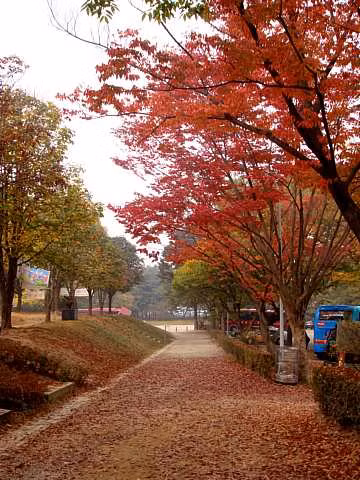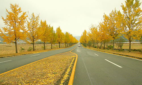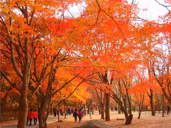 (GDVN) - Mùa thu ở Hàn Quốc đặc biệt không chỉ có màu vàng, mà điểm xuyến thêm vào bức tranh mùa thu ấy là những hàng cây lá phong đỏ và cả cây Nomiji với lá hình cánh sao – một loại cây đặc trưng ở Hàn Quốc, cứ đến mùa thu lại đỏ thẫm lạ kỳ, để rồi khi gặp những cơn gió nhẹ thoảng làm rung rinh thì những chiếc lá ấy lại xào xạc bay như trải thảm đỏ dưới mặt đường để đón chào du khách…