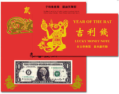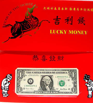 | Một trong những đồng đô la may mắn kèm phong bao đỏ được bán ra năm nay. |