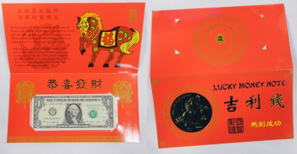 Tổng cộng 88.888 tờ USD may mắn sẽ được bán ra trong dịp năm mới 2014, trong đó mỗi tờ đều được kẹp trong một phong bao màu đỏ có những câu chúc Tết và hình con ngựa.