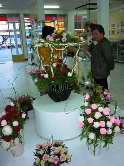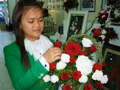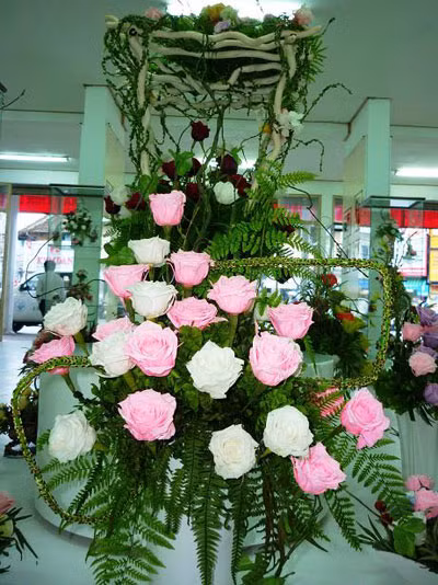 | Điều đặc biệt, sau khi sấy khô hoa vẫn giữ được nguyên vẹn màu sắc tươi tự nhiên ban đầu nên sản phẩm này hiện đang được thị trường rất ưa chuộng. Giỏ hoa có giá cao nhất này được thiết kế sang trọng với đế đỡ bằng nhựa óng ánh, cao khoảng 2,5m. Một nhân viên bán hoa tại công ty này cho biết, chỉ tính riêng công đoạn cắm bình hoa trên đã mất hai ngày. |