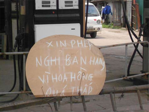 Những ngày qua, tại Hà Nội đã xuất hiện tình trạng nhiều cửa hàng xăng dầu treo biển ngừng bán với lý do hoa hồng quá thấp, không đủ trả tiền lương công nhân, chiết khấu thấp khiến họ phải bỏ tiền túi ra bù vốn. Nguyên nhân của vấn đề này được giải thích là do giá nhập khẩu xăng dầu tăng (mặc dù thuế nhập khẩu đã giảm từ 5% xuống còn 3%), doanh nghiệp đầu mối nhập khẩu vẫn bị lỗ, buộc phải giảm mức hoa hồng chi cho các đại lý.