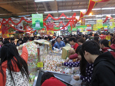 | Lượng tiêu thụ trong những ngày cận tết tại siêu thị tăng đột biến. |