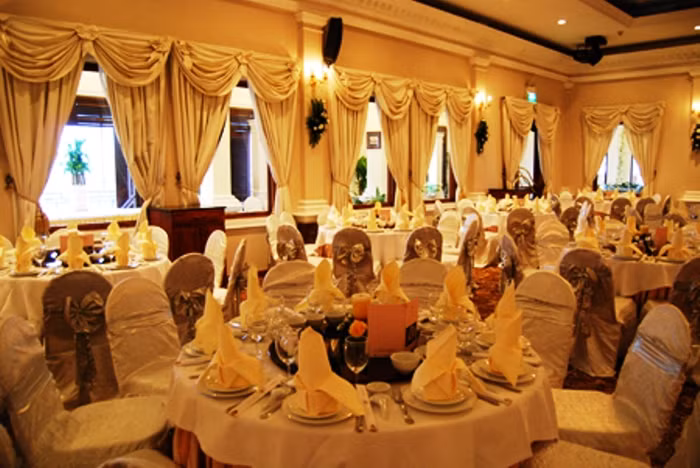 | Không gian bên trong khách sạn được Hứa Bổn Hỏa thiết kể hiện đại có cả bể bơi, trải qua các thời kỳ được các ông chủ tu sửa hiện đại dần lên |