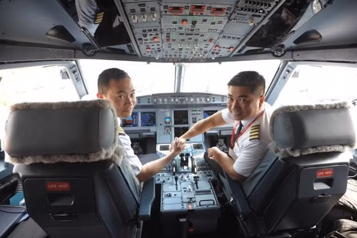 | Những hành khách đầu tiên trên chuyến bay mới Airbus A321. |