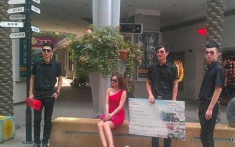 | Qua tấm biển cho thấy, cô gái đang là quản lý của một công ty lớn, thu nhập khoảng 300.000 nhân dân tệ/năm, có biệt thự và xe riêng. Hình dáng bên ngoài cho thấy cô khá xinh đẹp với dáng người cao, da trắng, khuôn mặt khá ưa nhìn, mái tóc dài ngang lưng, phong cách sang trọng |