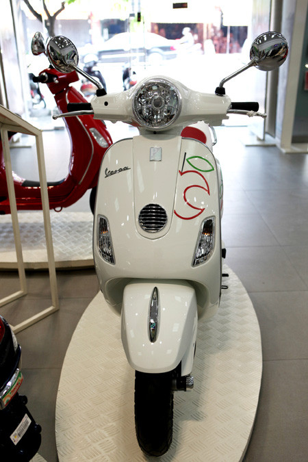 | Vespa “trái táo” hiện đã có mặt tại các đại lý của Piaggio Việt Nam trên toàn quốc với số lượng có hạn, giá bán lẻ là 67,9 triệu đồng, cao hơn 1,2 triệu đồng so với phiên bản Vespa LX 125 i.e thường. |