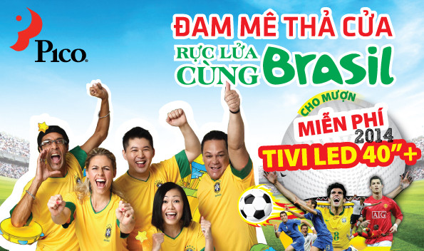 Ngày khai mạc World Cup 2014 đã cận kề, hòa cùng không khí bóng đá cuồng nhiệt tại đất nước của vũ điệu Samba, hệ thống siêu thị Điện máy PICO và các hãng điện tử mang đến chương trình “Đam mê thả cửa, rực lửa cùag Brasil” với nhiều chương trình khuyến mại hấp dẫn dành cho các sản phẩm Tivi.