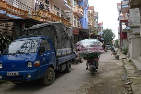 | Cảnh ô tô chở hàng ra vào, người chở đồ tấp nập là hình ảnh quen thuộc của làng Đông Hồ trong ngày gần đây. |