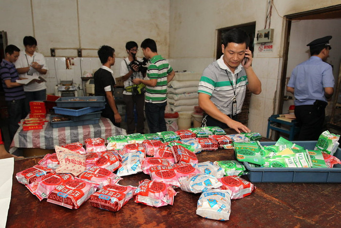 Cơ quan chức năng ở Trung Quốc vừa tiến hành kiểm tra một số cơ sở sản xuất bánh Trung thu, Tại một địa điểm ở Quảng Đông (Trung Quốc), nhân viên kiểm tra đã phát hiện bánh Trung thu bị mốc meo, không thể ăn được.
