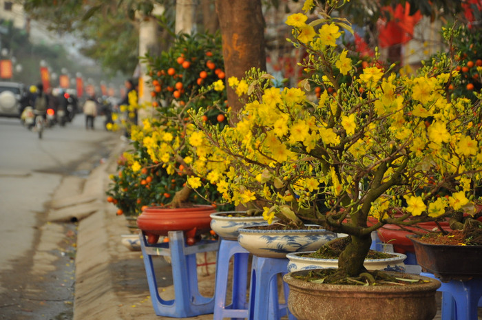 | Những cây thanh long cảnh được trưng bày bán trên đường phố Hà Nội ngày trước tết. |