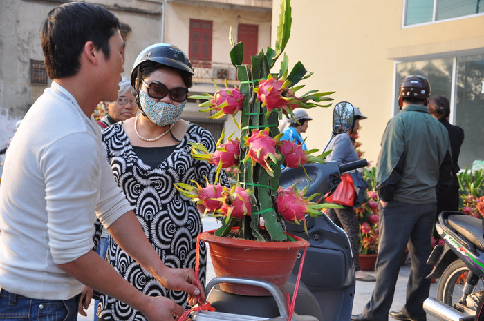 Năm nay, nhiều người dân Hà Nội đã lựa chọn cây thanh long về “chơi” tết thay vì lựa chọn cành đào, cây quất.