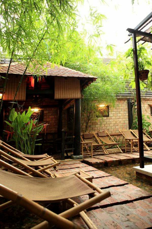 | Vớikhuôn viên rộng rãi và sang trọng nhưng mang nhiều nét cổ kính với nội thất chủ yếu là gỗ (được trạm trổ tinh vi) và gạch cổ, các đấng mày râu đến đây như được trải mình vào thiên nhiên của cỏ cây, hoa lá trong những khu vườn nghỉ, hay trong khu nhà cổ mang dáng dấp cung đình Huế. |