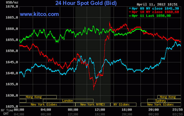 Nhìn chung, giá kim loại quý này giao dịch trong cả ngày 11/4 ở thế cân bằng khi biên độ dao động giá trong khoảng hơn 10 USD. Mức giá cao nhất được ghi nhận ở vùng 1.664 USD/oz và mức thấp nhất là 1.652 USD/oz.