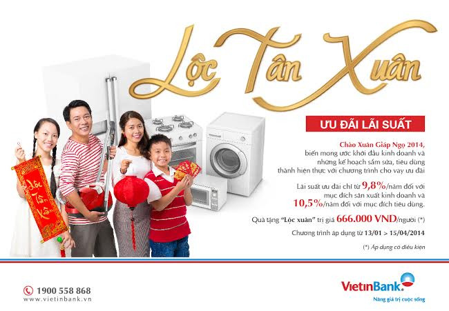 Tham gia chương trình “Lộc Tân Xuân” của VietinBank, các khách hàng cá nhân/hộ gia đình/doanh nghiệp siêu vi mô có cơ hội mau chóng xóa bỏ được nỗi lo về vốn để phục vụ nhu cầu sản xuất kinh doanh hay biến những kế hoạch sắm sửa, chi tiêu tiêu dùng thành hiện thực.