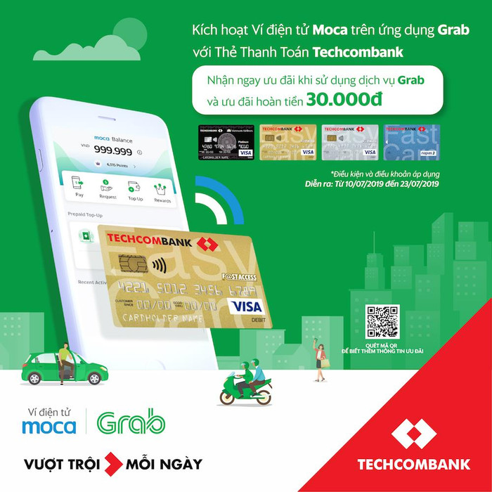 Nhân dịp này, ví điện tử Moca trên ứng dụng Grab áp dụng chương trình khuyến mại đặc biệt dành riêng cho chủ thẻ Techcombank.