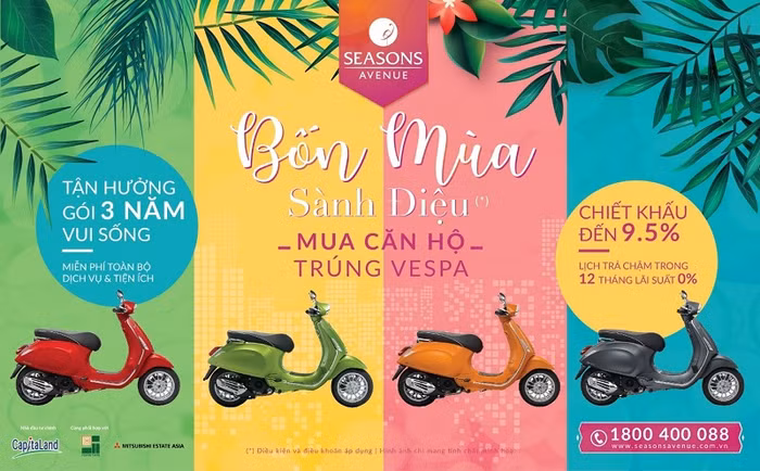 Hiện nay, An Cư và Đất Xanh Miền Bắc là hai đại lý độc quyền phân phối dự án Seasons Avenue và cũng đồng tài trợ 04 xe Vespa cho chương trình đặc biệt này.