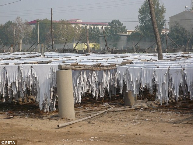 Các điều tra viên PETA châu Á đã bí mật điều tra ba lò mổ, sáu nhà máy chế biến da ở Hà Bắc trong vòng một năm cho biết, nhiều con chó đã bị lột da khi vẫn còn sống.