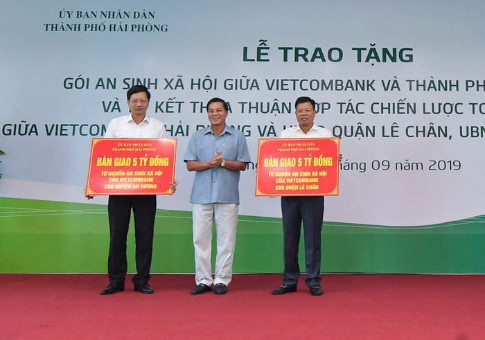 Thực hiện chương trình hỗ trợ an sinh xã hội trên địa bàn thành phố Hải Phòng, sáng ngày 29/9/2019 tại trụ sở Hội đồng Nhân dân - Ủy ban Nhân dân huyện An Dương, thành phố Hải Phòng đã trang trọng diễn ra Lễ trao tặng gói an sinh xã hội giữa Ngân hàng Thương mại Cổ phần Ngoại thương Việt Nam (Vietcombank) và Thành phố Hải Phòng và Lễ ký kết thỏa thuận hợp tác chiến lược toàn diện giữa Vietcombank Hải Phòng và Ủy ban Nhân dân quận Lê Chân, Ủy ban Nhân dân huyện An Dương.