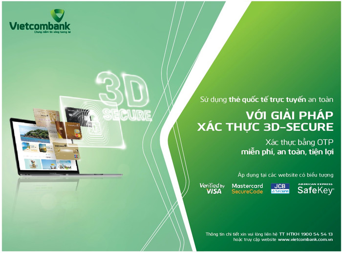 Ngày 10/12/2018, Ngân hàng Thương mại cổ phần Ngoại thương Việt Nam (Vietcombank) chính thức triển khai tính năng bảo mật giao dịch trực tuyến Thẻ Quốc tế (Vietcombank 3D Secure) – giải pháp bảo mật tiên tiến nhất hiện nay.