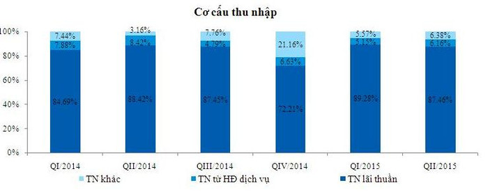 Tính lũy kế từ đầu năm đến hết 30/6/2015, tổng thu nhập hoạt động của VietinBank tăng 11,68% so với cùng kỳ năm trước, đạt gần 11 nghìn tỷ đồng. Trong đó, thu nhập lãi thuần tăng 8,45% và thu nhập thuần từ hoạt động dịch vụ tăng 1,24%. Đây vẫn là hai nguồn thu chính của ngân hàng (chiếm 94% tổng thu nhập hoạt động).