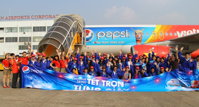 Hiểu nỗi lo, mong ước lớn nhất của các sinh viên, công nhân miền Trung và mong muốn góp phần tạo nên niềm vui bất ngờ vào dịp Tết, VietjetAir đồng hành cùng Pepsi tổ chức 2 chuyến bay Thành phố Hồ Chí Minh – Đà Nẵng vào ngày 23 Tết Âm lịch. Chuyến đầu tiên vào lúc 10h30 ngày 23 /1/2014 và chuyến thứ hai vào lúc 14h10 cùng ngày.