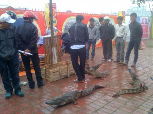 Sáng ngày 8/4, dọc vỉa hè đường Lê Công Thanh, cạnh SVĐ TP. Phủ Lý (Hà Nam), xuất hiện một nhóm người đến đổ hàng chục con cá sấu lớn nhỏ xuống vỉa hè và giết mổ, lột da chúng tại chỗ theo yêu cầu của khách.