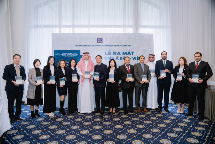Đại sứ Vương quốc Saudi Arabia tại Việt Nam Mohammed Ismaeil A. Dahlwy và Tiến sĩ Đỗ Tuấn Minh, Chủ tịch Hội đồng Trường Đại học Ngoại ngữ, Đại học Quốc gia Hà Nội cùng giới thiệu cuốn Từ điển Arab - Việt. Ảnh: Đại sứ quán Saudi Arabia.
