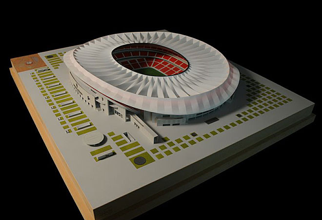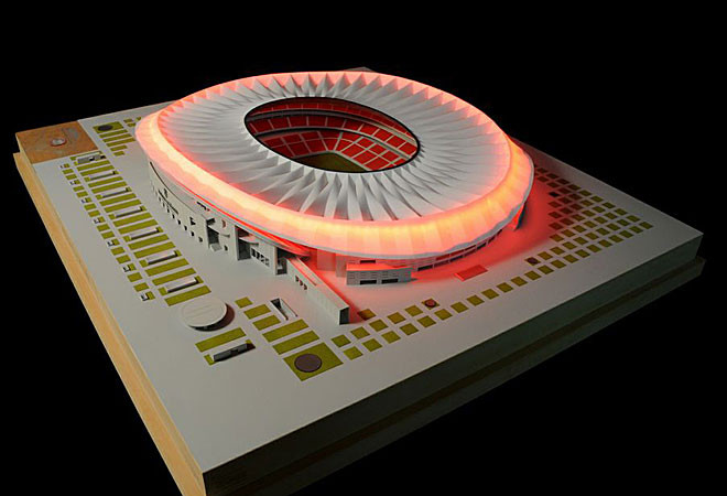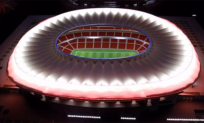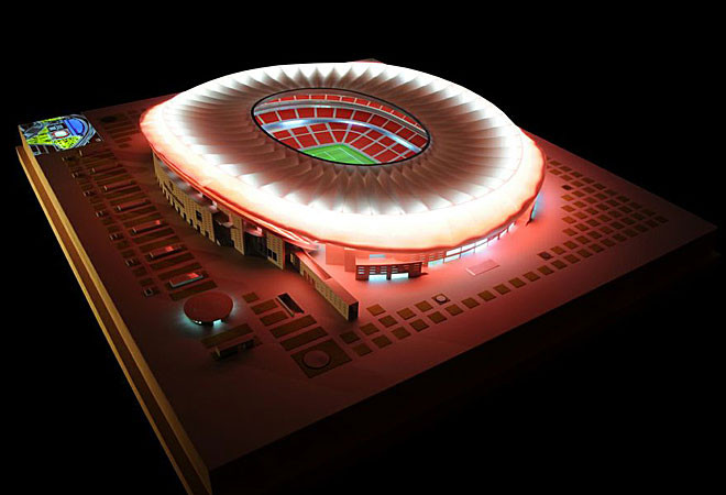 (GDVN) - Mới chỉ là bản phác thảo nhưng Atletico Madrid đã không giấu diếm khát vọng sở hữu một sân bóng hiện đại có sức chứa trên 7 vạn chỗ ngồi nhằm thay thế cho Vicente Calderón nhỏ bé. Dự kiến Atletico sẽ dọn nhà tới sân mới vào mùa hè 2013 và khi ấy, họ sẽ có thể ‘lên mặt’ với người hàng xóm đáng ghét Real Madrid, hiện đang sở hữu sân Bernabeu có sức chứa trên 8 vạn người.