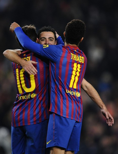 | Messi còn tạo điều kiện cho Xavi ghi bàn thắng thứ 5 cho Barca. |