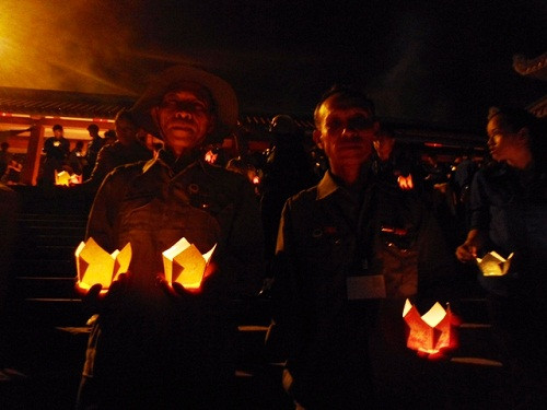 | Thắp nến tri ân các anh hùng liệt sỹ trên sông Thạch Hãn tối 26/7. |