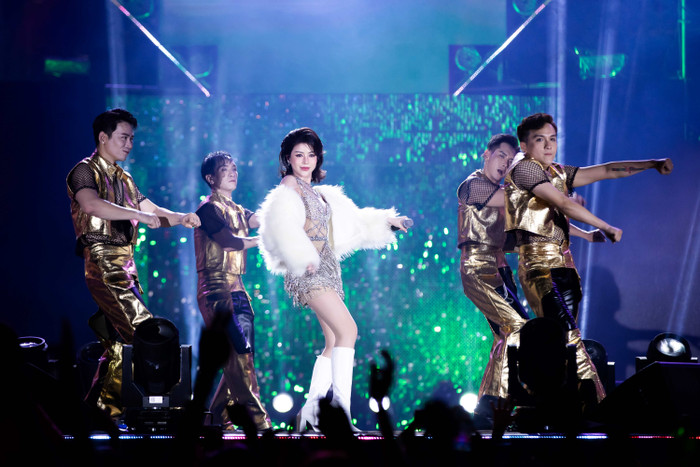 Trong khi đó, "Nữ hoàng nhạc dance" Thu Minh đã say đắm trái tim các du khách trong những màn trình diễn đặc sắc, với những bản hit quen thuộc như “I Believe I Can Fly”, “Chuông gió”, “Bay”...